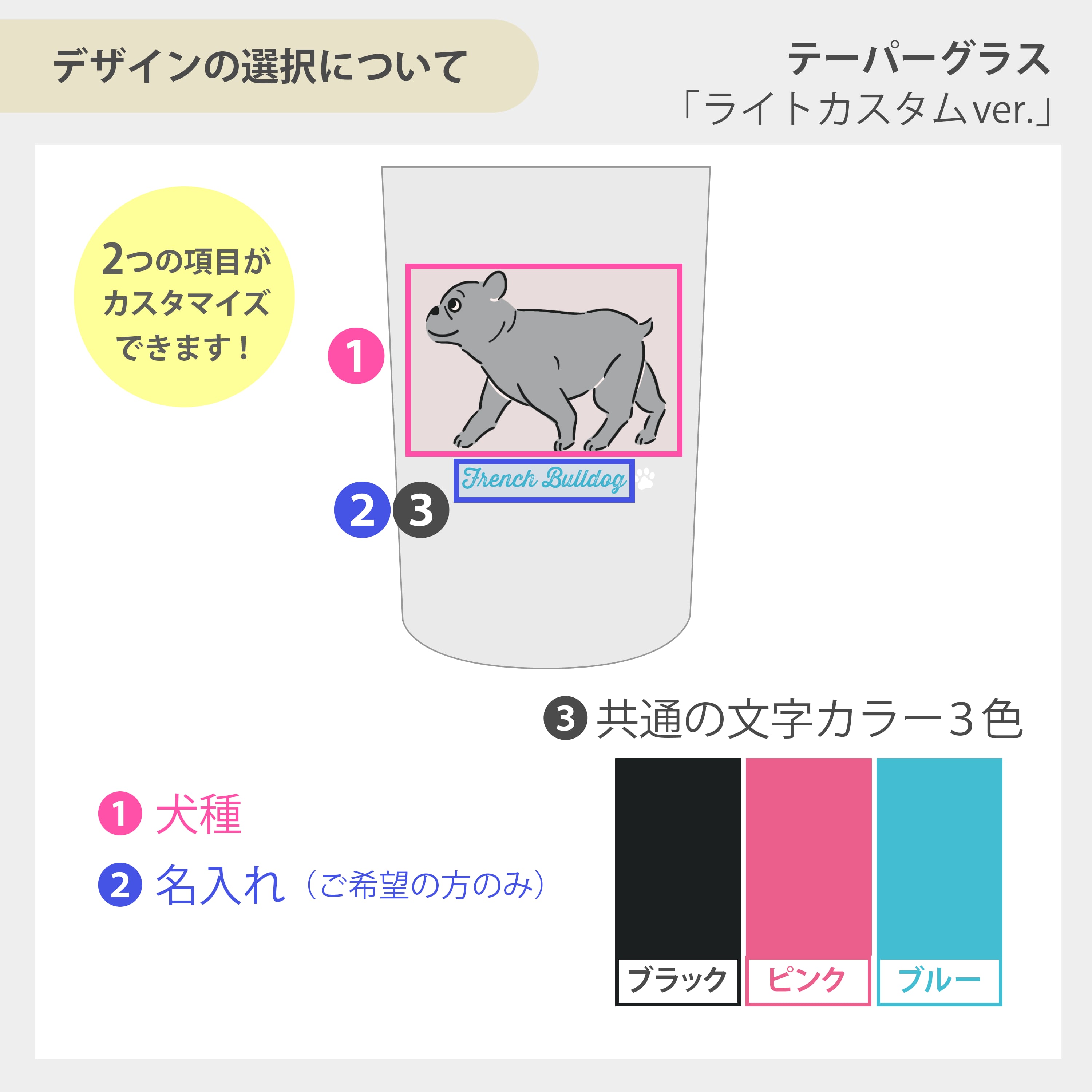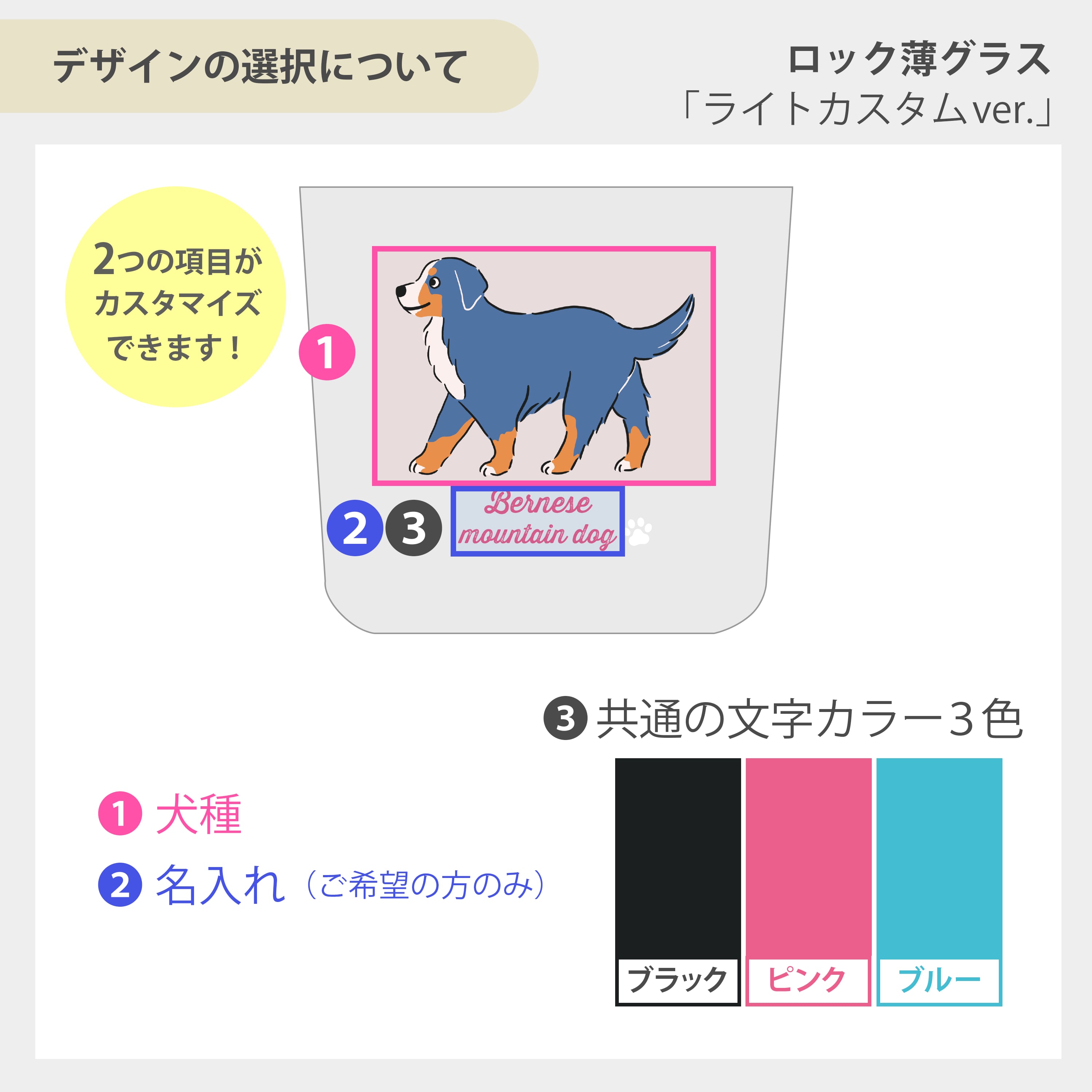 ※名入れを希望しない場合、選択した犬種名が印字されます。